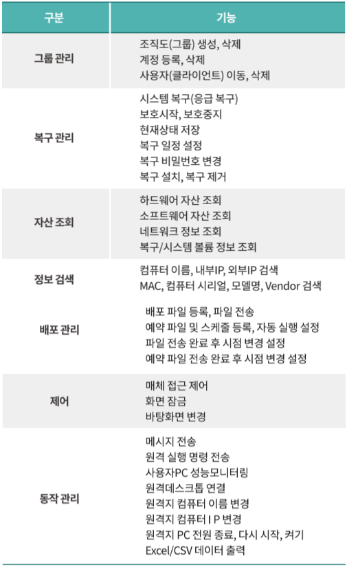 이중 Web 버전의 경우 원거리에 위치해 있는 건물의 PC들의 자산 및 복구 모듈을 관리하여