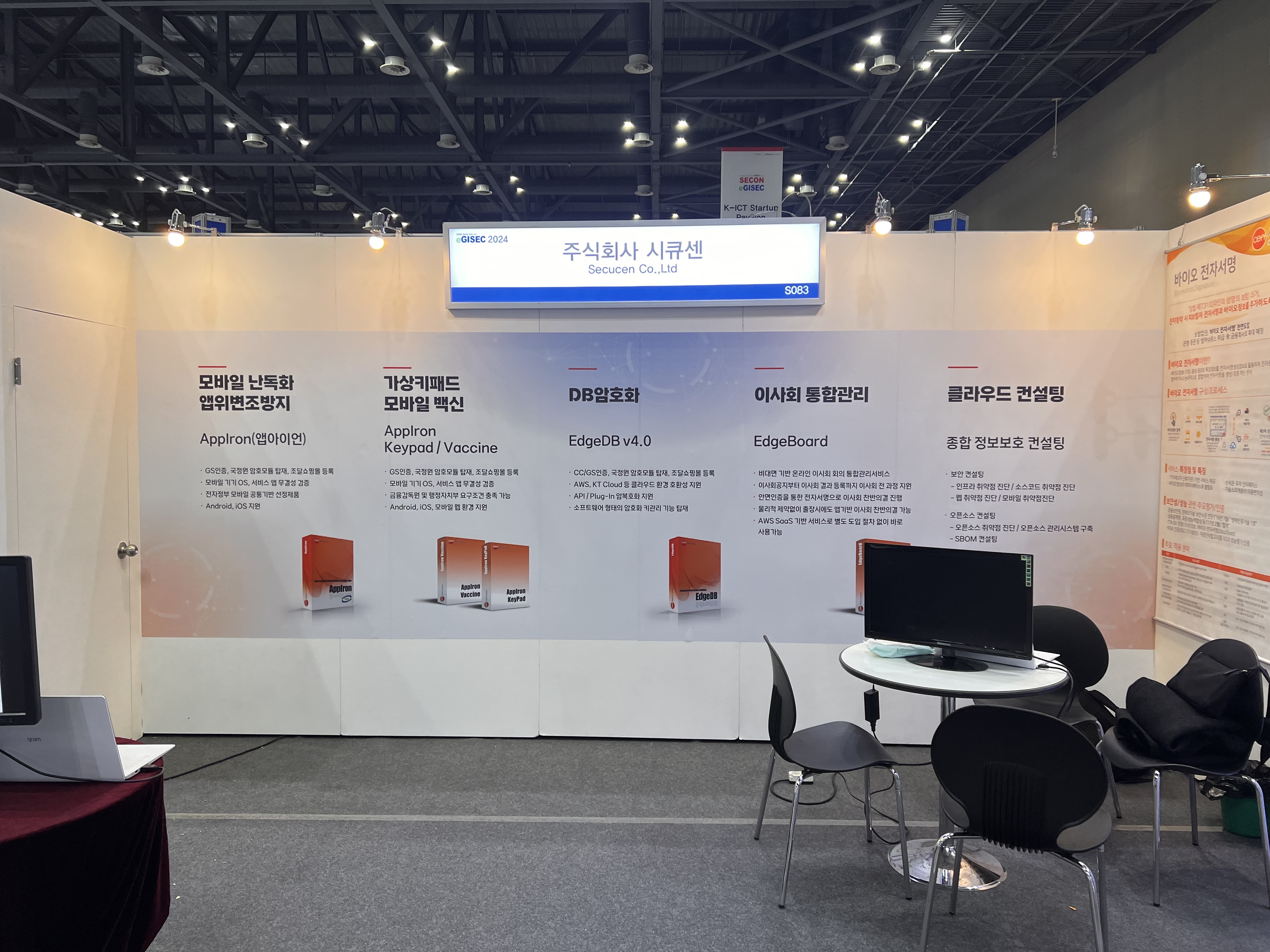 행정안전부에서 주최하는 2024 전자정부 정보 보호 솔루션 페어 eGISEC에 다녀왔습니다. 파트너 업체인(주)시큐센이 행사에 참여하여 행사 지원했으며 EdgeDB v4.0 제품 외 다양한 솔루션을 참관객분들께 소개 및 컨설팅하였습니다.