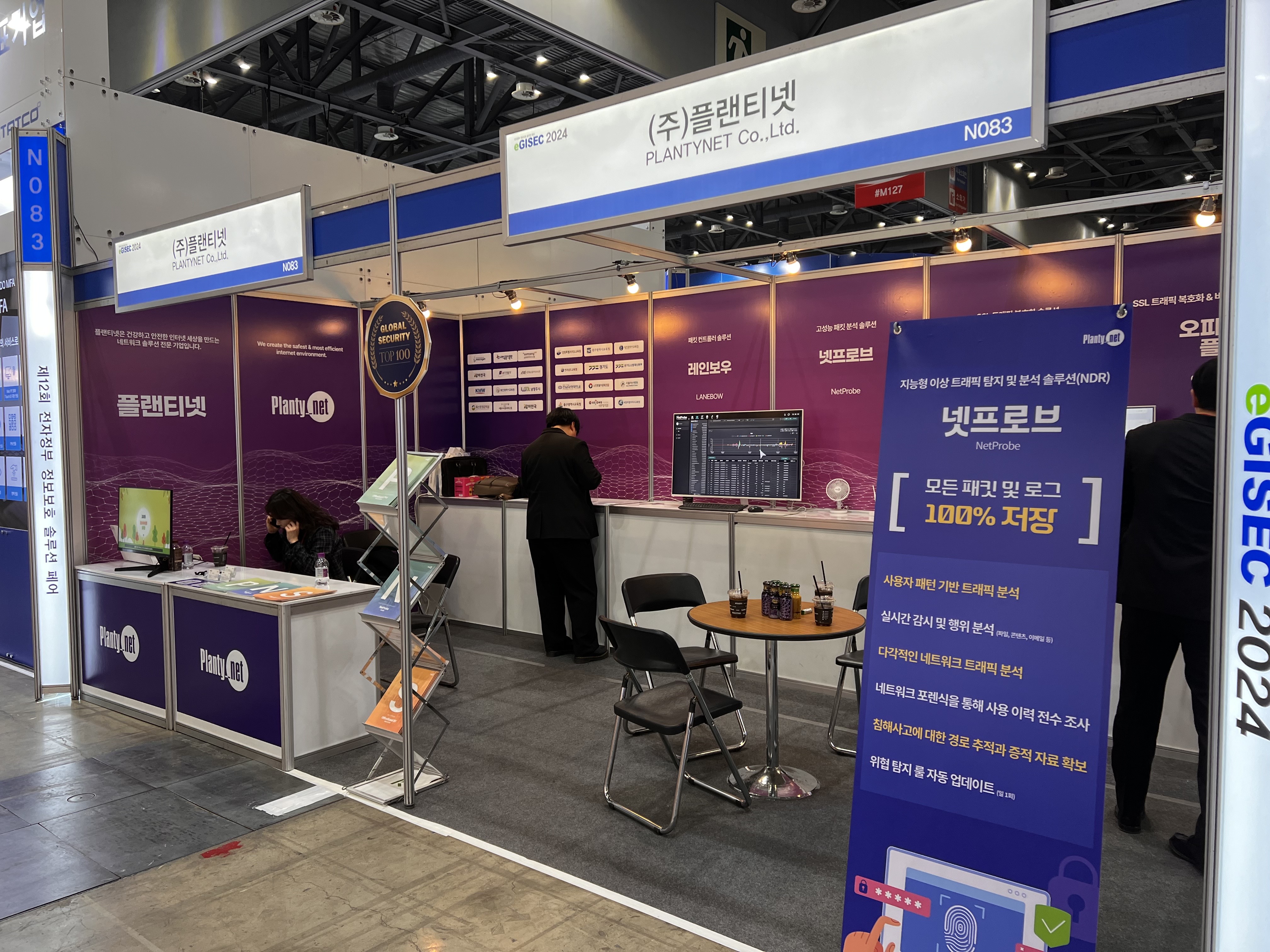 (주)플랜티넷의 부스 번호는 N083으로 이틀 전 행사 지원했던 (주)시큐센과 같은 라인에 위치해 있습니다. 행사는 솔루션 소개와 함께 직접 시연해볼 수 있는 자리를 마련하여 보다 이해하기 쉽도록 구성했으며, 실제 업무에서 어떻게 사용되는지 확인할 수 있었습니다. 또한 방문해주신 참관객분들께 스타벅스 커피 쿠폰, 핸드폰 충전 마우스 패드, 휴대용 보조배터리 등 다양한 선물까지 증정하는 등 솔루션에 대한 정보 뿐만이 아닌 기억에 남을 선물까지 두둑하게 준비했습니다.