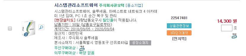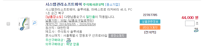 NOTICE >공지사항 >업계소식 >뉴스레터 >프로모션 >RECRUIT - 공지사항 업계소식 뉴스레터 Vol.23 Vol.22 Vol.21 Vol.20 Vol.19 Vol.18 Vol.17 Vol.16 Vol.15 프로모션 고객 프로모션 파트너 프로모션 RECRUIT 문의 전화 02.3663.3212 Daily:09:00~18:00 Lunch:12:00~13:00 공지사항 Home > NOTICE [나라장터] 마에스트로 2018-09-10 10:16:46 관리자 시스템 순간복구 및 관리 솔루션 마에스트로 제품입니다.<아래의 품목들을 각각 클릭하시면 나라장터 종합쇼핑몰로 바로 이동이 가능합니다.> < 이전 다음 > 목록
