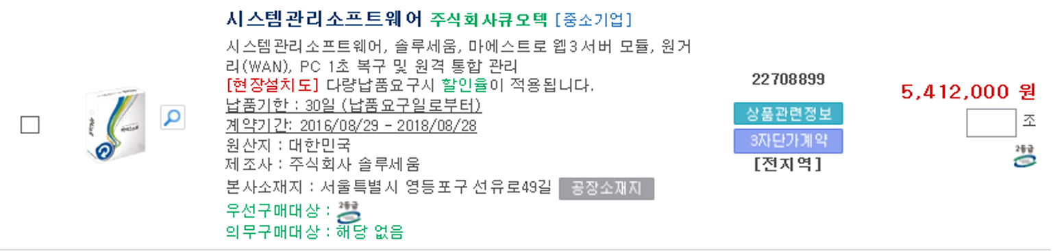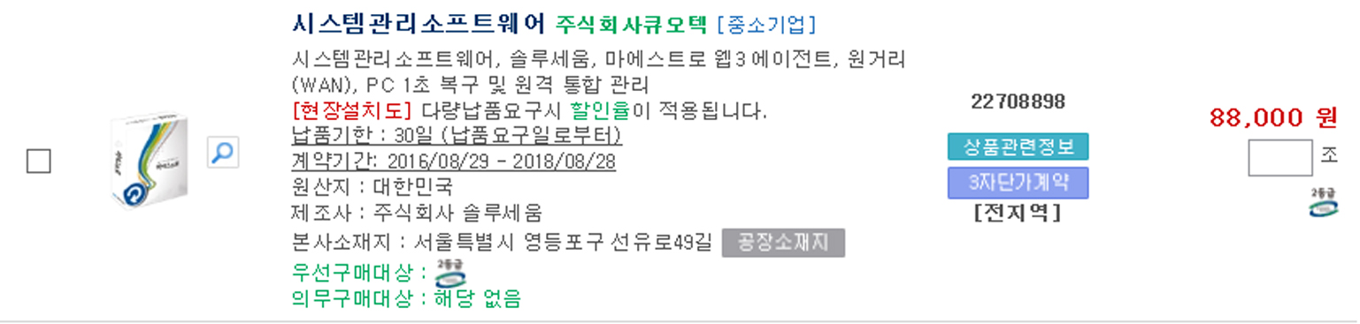 NOTICE >공지사항 >업계소식 >뉴스레터 >프로모션 >RECRUIT - 공지사항 업계소식 뉴스레터 Vol.23 Vol.22 Vol.21 Vol.20 Vol.19 Vol.18 Vol.17 Vol.16 Vol.15 프로모션 고객 프로모션 파트너 프로모션 RECRUIT 문의 전화 02.3663.3212 Daily:09:00~18:00 Lunch:12:00~13:00 공지사항 Home > NOTICE [나라장터] 마에스트로 2016-09-12 16:01:47 관리자 시스템 순간복구 및 관리 솔루션 마에스트로 제품입니다.아래의 품목을 클릭하시면 나라장터 종합쇼핑몰로 이동하여 바로 구매가 가능합니다. < 이전 다음 > 목록