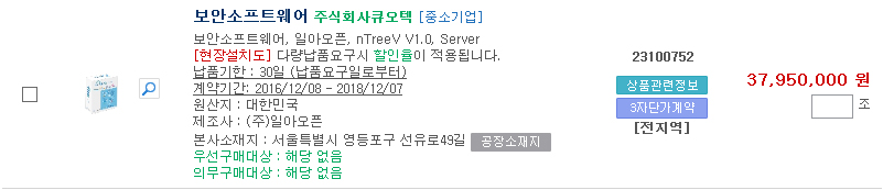 NOTICE >공지사항 >업계소식 >뉴스레터 >프로모션 >RECRUIT - 공지사항 업계소식 뉴스레터 Vol.23 Vol.22 Vol.21 Vol.20 Vol.19 Vol.18 Vol.17 Vol.16 Vol.15 프로모션 고객 프로모션 파트너 프로모션 RECRUIT 문의 전화 02.3663.3212 Daily:09:00~18:00 Lunch:12:00~13:00 공지사항 Home > NOTICE <b>[나라장터] nTreeV V1.0</b> 2016-12-15 17:09:18 관리자 nTreeV는 IT보안인증사무국의 CC인증(EAL2)을 획득한 보안제품으로,VMware vSphere 기반의 국산VDI (가상화/망분리) 솔루션입니다.아래의 품목을 클릭하시면 나라장터 종합쇼핑몰로 이동하여 바로 구매가 가능합니다. < 이전 다음 > 목록