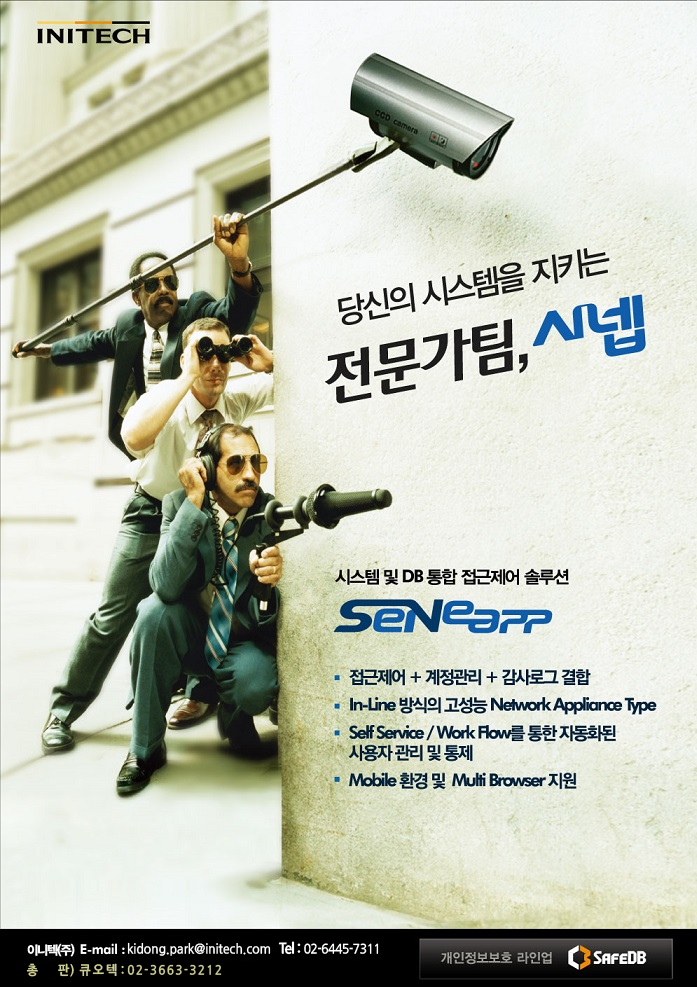 NOTICE >공지사항 >업계소식 >뉴스레터 >프로모션 >RECRUIT - 공지사항 업계소식 뉴스레터 Vol.23 Vol.22 Vol.21 Vol.20 Vol.19 Vol.18 Vol.17 Vol.16 Vol.15 프로모션 고객 프로모션 파트너 프로모션 RECRUIT 문의 전화 02.3663.3212 Daily:09:00~18:00 Lunch:12:00~13:00 업계소식 Home > NOTICE 시스템과 DB 접근제어를 하나의 제품으로! 통합접근제어 솔루션 SeNeapp 2013-05-13 12:28:24 관리자 < 이전 다음 > 목록