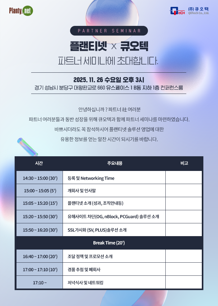 [11-17] 플랜티넷 파트너 행사 안내_11월26일(수)