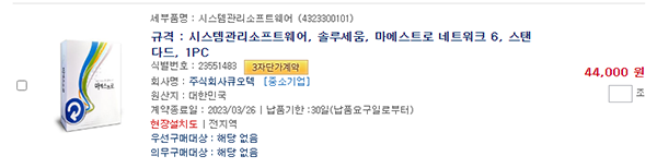 NOTICE >공지사항 >업계소식 >뉴스레터 >프로모션 >RECRUIT - 공지사항 업계소식 뉴스레터 Vol.23 Vol.22 Vol.21 Vol.20 Vol.19 Vol.18 Vol.17 Vol.16 Vol.15 프로모션 고객 프로모션 파트너 프로모션 RECRUIT 문의 전화 02.3663.3212 Daily:09:00~18:00 Lunch:12:00~13:00 공지사항 Home > NOTICE [나라장터] 마에스트로 2019-04-09 11:54:18 관리자 시스템 순간복구 및 관리 솔루션 마에스트로 제품입니다.<아래의 품목들을 각각 클릭하시면 나라장터 종합쇼핑몰로 바로 이동이 가능합니다.> < 이전 다음 > 목록