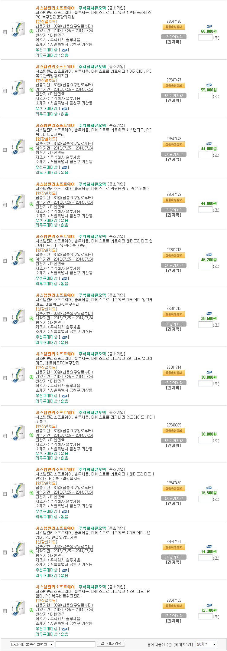 NOTICE >공지사항 >업계소식 >뉴스레터 >프로모션 >RECRUIT - 공지사항 업계소식 뉴스레터 Vol.23 Vol.22 Vol.21 Vol.20 Vol.19 Vol.18 Vol.17 Vol.16 Vol.15 프로모션 고객 프로모션 파트너 프로모션 RECRUIT 문의 전화 02.3663.3212 Daily:09:00~18:00 Lunch:12:00~13:00 공지사항 Home > NOTICE 마에스트로 나라장터 바로가기 (2013~2014) 2013-07-25 15:06:15 관리자 조달등록된 마에스트로 제품입니다.아래 품목 클릭하시면 나라장터 종합쇼핑몰로 바로 이동하여 구매가 가능하십니다. FONT>. < 이전 다음 > 목록