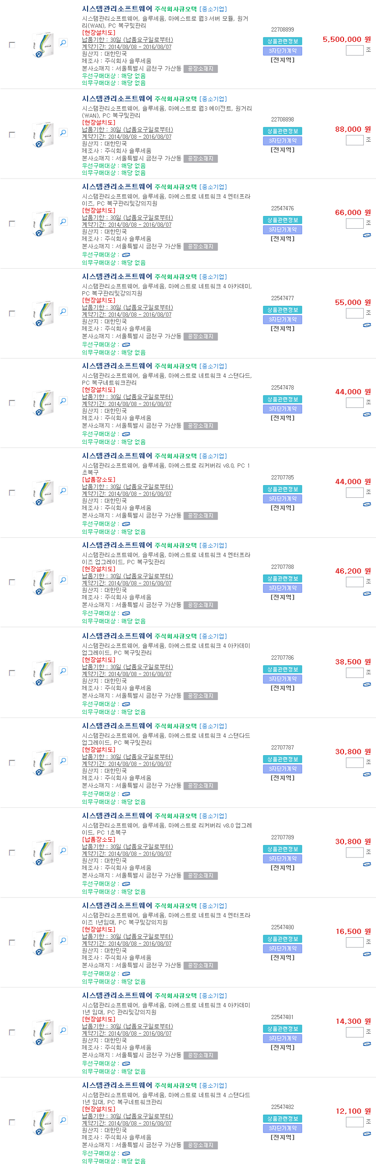 NOTICE >공지사항 >업계소식 >뉴스레터 >프로모션 >RECRUIT - 공지사항 업계소식 뉴스레터 Vol.23 Vol.22 Vol.21 Vol.20 Vol.19 Vol.18 Vol.17 Vol.16 Vol.15 프로모션 고객 프로모션 파트너 프로모션 RECRUIT 문의 전화 02.3663.3212 Daily:09:00~18:00 Lunch:12:00~13:00 공지사항 Home > NOTICE 마에스트로 나라장터 바로가기 (2014~2016) 2014-08-12 20:34:29 관리자 조달등록된 마에스트로 제품입니다.아래 품목 클릭하시면 나라장터 종합쇼핑몰로 바로 이동하여 구매가 가능하십니다. < BODY> < 이전 다음 > 목록