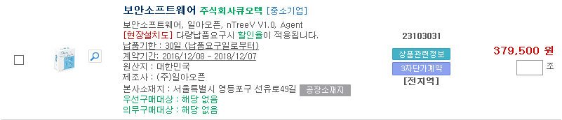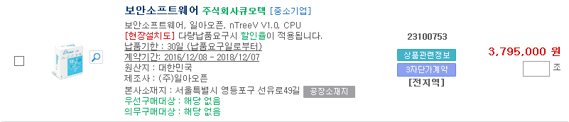 NOTICE >공지사항 >업계소식 >뉴스레터 >프로모션 >RECRUIT - 공지사항 업계소식 뉴스레터 Vol.23 Vol.22 Vol.21 Vol.20 Vol.19 Vol.18 Vol.17 Vol.16 Vol.15 프로모션 고객 프로모션 파트너 프로모션 RECRUIT 문의 전화 02.3663.3212 Daily:09:00~18:00 Lunch:12:00~13:00 공지사항 Home > NOTICE <b>[나라장터] nTreeV V1.0</b> 2016-12-15 17:09:18 관리자 nTreeV는 IT보안인증사무국의 CC인증(EAL2)을 획득한 보안제품으로,VMware vSphere 기반의 국산VDI (가상화/망분리) 솔루션입니다.아래의 품목을 클릭하시면 나라장터 종합쇼핑몰로 이동하여 바로 구매가 가능합니다. < 이전 다음 > 목록
