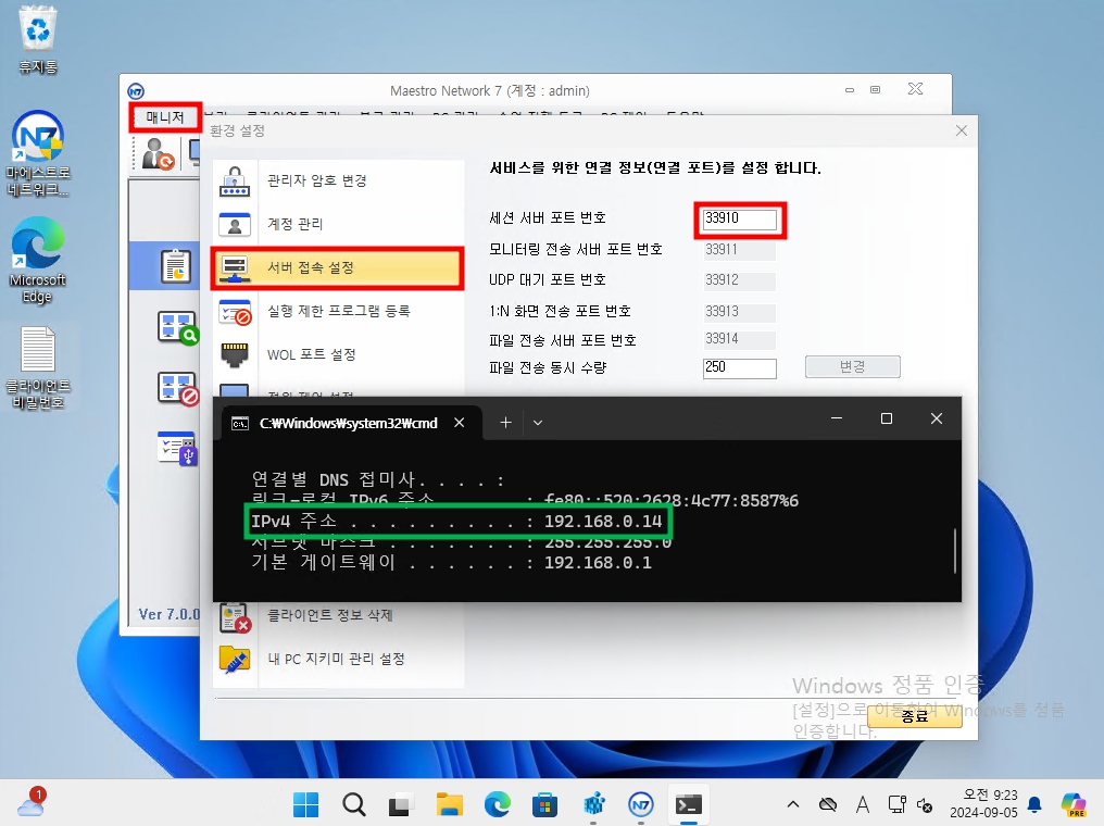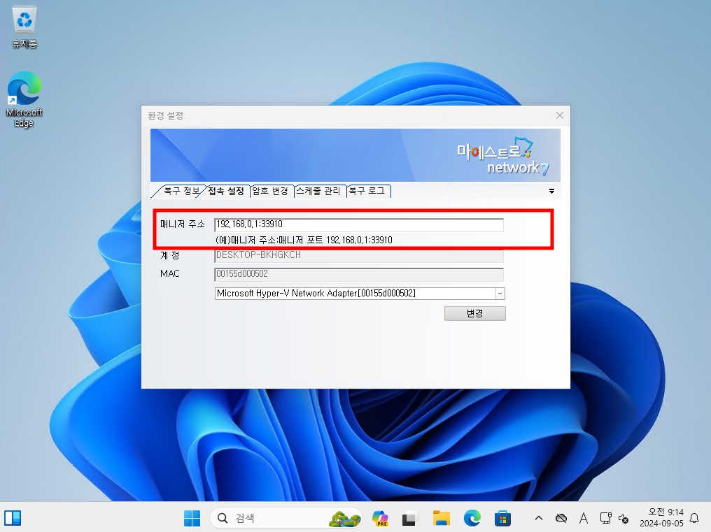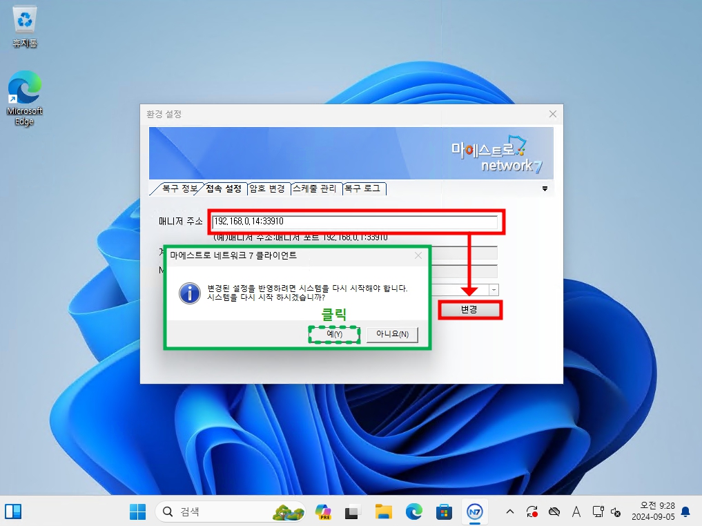 원격지원 서비스| 쇼핑몰 바로가기 >COMPANY >SECURITY >PRODUCT >G2BSHOP >CUSTOMER >NOTICE >DOWNLOAD - CUSTOMER 질문과답변 CEO 인사말 회사연혁 경영이념 조직도 인증·특허·수상 CI/BI 지역파트너 찾아오시는길 유해사이트차단 SSL/TLS가시성확보 APT 위협대응 네트워크 보안 데스크톱 가상화 랜섬웨어 대응 DB 암호화 데이터 영구삭제 자료유출방지 I-Stamp PatrOne AppIron Maestro SecuFy White MobiPost Maestro PatrOne Eye PatrOne Copy EdgeDB I-Stamp 수주/납품현황 질문과답변 데모요청 영업세일즈 공지사항 업계소식 뉴스레터 프로모션 RECRUIT 마에스트로 패트론카피 인증(폐쇄망) CUSTOMER >수주/납품현황 >질문과답변 >데모요청 >영업세일즈 수주/납품현황 질문과답변 데모요청 영업세일즈 문의 전화 02.3663.3212 Daily:09:00~18:00 Lunch:12:00~13:00 질문과답변 Home > CUSTOMER 마에스트로 네트워크 6 관련 질의 드립니다. 2024-09-04 09:58:54 관리자 안녕하세요. 큐오텍 입니다.문의 내용 확인했으며, 클라이언트 접속 설정이 잘못되어 [전원 끄기] 명령을 못 받는 문제로 확인되었습니다. 동일 문제 발생 시 대처하실 수 있는 방법을 안내드립니다.1. 마에스트로 매니저의 IP와 포트 번호를 확인합니다.2. 클라이언트 PC 하단의 숨겨진 아이콘 표시 → 마에스트로 아이콘을 더블 클릭합니다.3. 비밀번호를 입력하여 접속합니다.4. 접속 설정 페이지에 입력 되어 있는 매니저 IP(포트)번호가 일치한지 확인합니다.5. 매니저 주소 정보가 일치하지 않다면, 수정 후 변경 버튼을 눌러줍니다. - 시스템 다시 시작 문구가 나오면 재부팅 후 정상적으로 연결됩니다. 다시 시작 메시지가 아닌, 접속 오류 메시지가 표시된다면하단의 전화번호로 문의 주시기 바랍니다.원격 지원을 통하여 접속하실 수 있도록 도와드리겠습니다.원격 지원 문의 : 02-3663-3212 < 이전 다음 > 글쓰기 목록